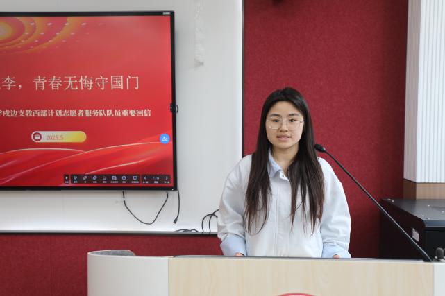 研究生会学研部张彦同学以“扎根边疆育桃李,青春无悔守国门”为题,介绍了谢依特小学基本情况,分享了志愿者们在支教事业中所取得的累累硕果以及他们坚守边疆、无私奉献的精神品质,深入解读了习近平总书记对谢依特小学戍边支教西部计划志愿者服务队队员的重要回信精神,带领大家深切体悟习近平总书记对西部计划志愿者的关怀厚望和对广大青年的殷切希望。
