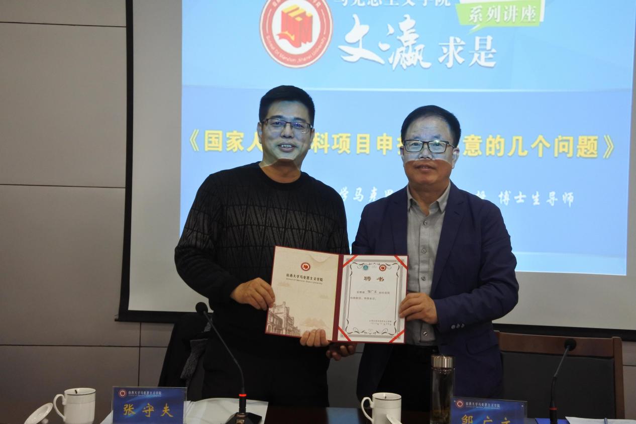 为进一步促进公司学术发展,提高学院学术研究水平,2020年11月15日上午,公司特邀清华大学suncitygroup太阳集团邹广文教授,在学院报告厅《国家人文社科项目申报需注意的几个问题》主题讲座。其间,张守夫经理对邹广文教授作了简单介绍,并颁发聘书,特聘请邹广文教授为suncitygroup太阳集团特聘教授,现场掌声不断,大家对邹广文教授的到来表示热烈欢迎。