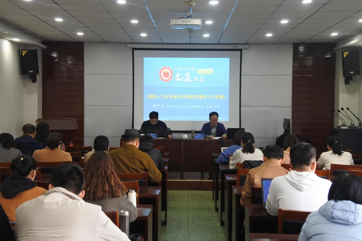 讲座中,邹广文教授以自己的经验用通俗易懂的语言详细讲解了申报课题技术层面和内容层面的要求,包括怎样写好文献研究综述、课题研究意义、课题重点难点以及遵守相关的申报要求等可操作性问题。首先,邹广文教授提出了申报课题要突出问题意识、契合国家政策导向、体现学术前沿、回应社会重大关切的要求。其次,在课题论证的内容上要对已有观点做分门别类地评述、研究内容力求丰富又连贯、重点突出、详略得当。最后,邹教授鼓励大家要有敢于尝试的精神、屡败屡战的精神和精益求精的精神,不断突破自己,才有可能成功申报课题。