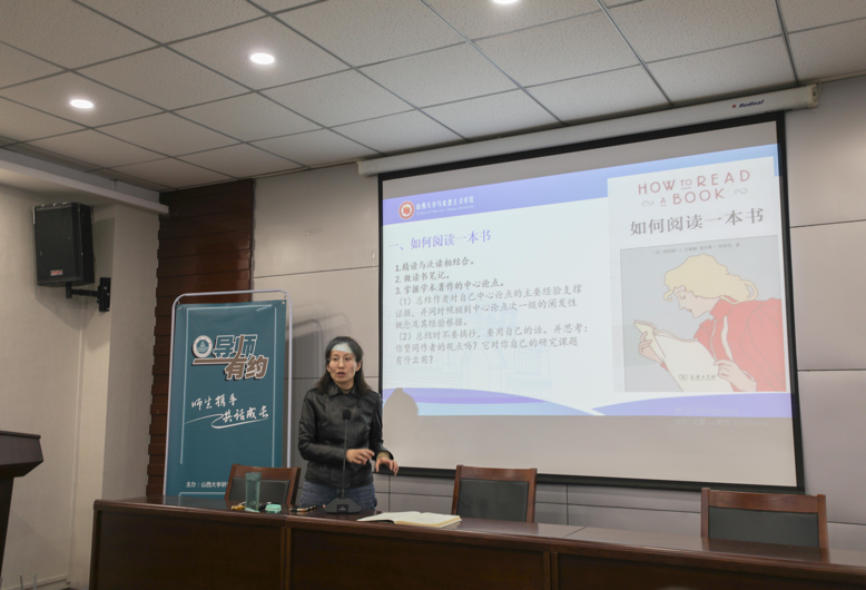 侯红霞老师主要围绕“如何阅读学术著作”“如何写作论文”“如何确定学位论文选题”三个方面展开详细讲解。关于阅读学术著作,她倡导大家要将精读和泛读相结合,读书与思考相结合,重点掌握作者的中心论点,次一级的阐发性概念及其相关论据,并围绕你是否赞同作者的观点这一问题进行深度思考;关于论文写作,她提出要对论文研究主题的前沿动态进行持续研究,待产生好的“idea”之后再展开写作,并对摘要、引言、正文、结论及参考文献的具体写作方法进行了阐述,强调要注意语言表述及字斟句酌修改论文的重要性;关于确定学位论文选题,她鼓励大家要不断培养自己独立思考和批判性思维的能力,将导师的研究领域和自己的研究兴趣有机地结合起来确定选题,并对开展研究的具体过程进行了详尽地介绍。