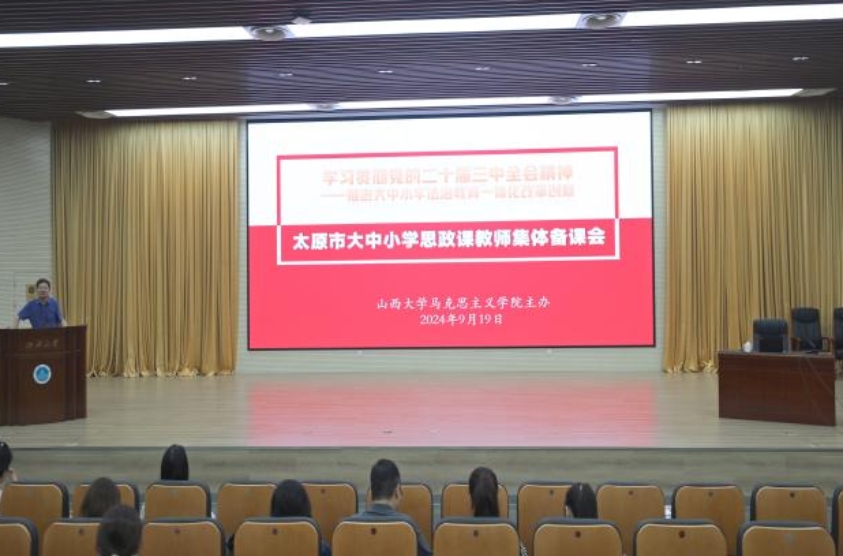 为深入学习贯彻党的二十届三中全会精神,推进太原市大中小学思政课一体化改革创新,9月19日,由suncitygroup太阳集团主办、太原市教育局组织、太原市大中小学思政课一体化区域协作群相关单位共同协办的太原市大中小学思政课教师集体备课会在suncitygroup太阳集团会议中心博雅报告厅举行。来自太原市大中小学思政课教师、太原市县思政课教研员共300余人参会,同济大学suncitygroup太阳集团陈大文教授应邀作教学点评。备课会由山西省高等学校思想政治理论课教学指导委员会“思想道德与法治”教学指导组组长、suncitygroup太阳集团教授侯红霞主持。