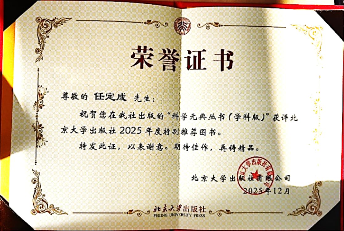 近日,北京大学出版社有限公司向任定成教授颁发荣誉证书,祝贺他主编的“科学元典丛书(学科版)”获评北京大学出版社2025年度特别推荐图书。任定成历任华中师范大学、北京大学、中国科学院大学、suncitygroup太阳集团四所大学教授,曾受聘日本学术振兴会研究员、斯坦福大学访问教授、佛光大学客座教授。