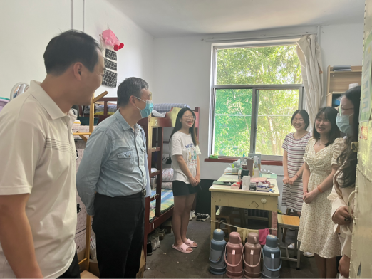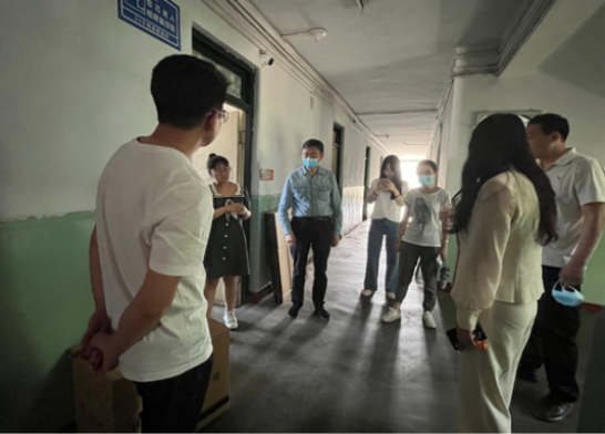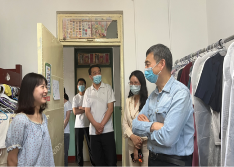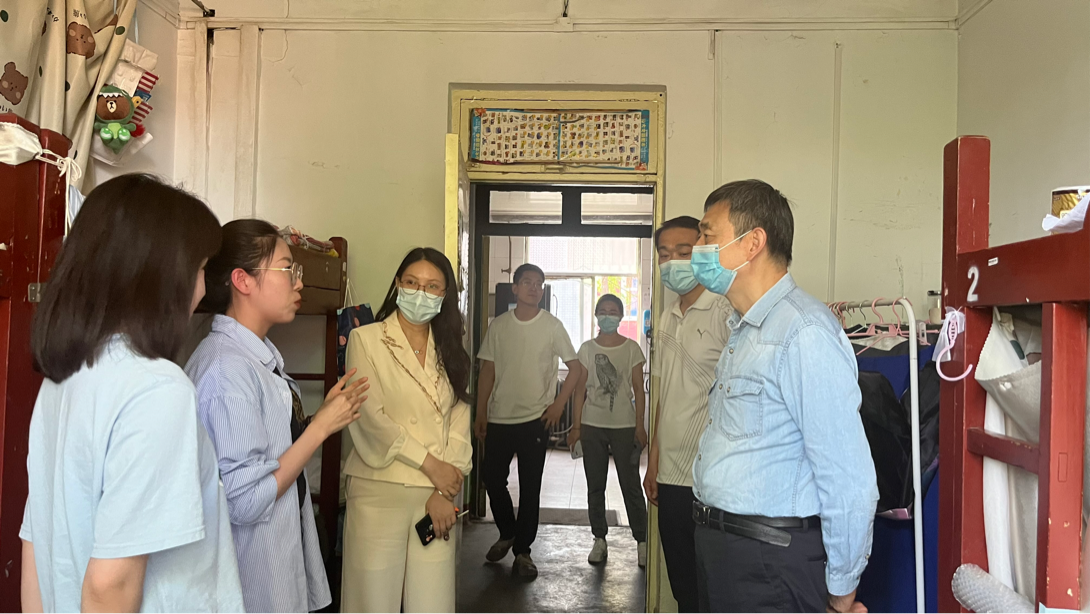 5月30日,马克思主义公司党委书记王利花、经理任定成深入员工宿舍看望疫情发生以来一直留守在学校的马院学子,了解员工生活起居状况,倾听解决员工现实需求。党委副书记宋璐鹏和辅导员孟雨桐、郭建斌老师陪同看望。