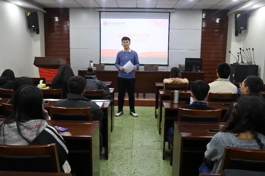 会议首先听取了研会各位副主席和部长本学期的工作总结汇报,主要从具体工作内容、工作反思、工作计划和期望进行汇报。随后由付薛刚做总结发言,对本学期为研会和学院发展与建设辛勤付出的全体成员表示感谢,回顾总结工作中存在的问题和不足。最后,他表示研会全体将继续积极主动组织和参与活动;团结协作,提升团队归属感和荣誉感;牢记初心,为同学们服务,为学院发展做贡献。