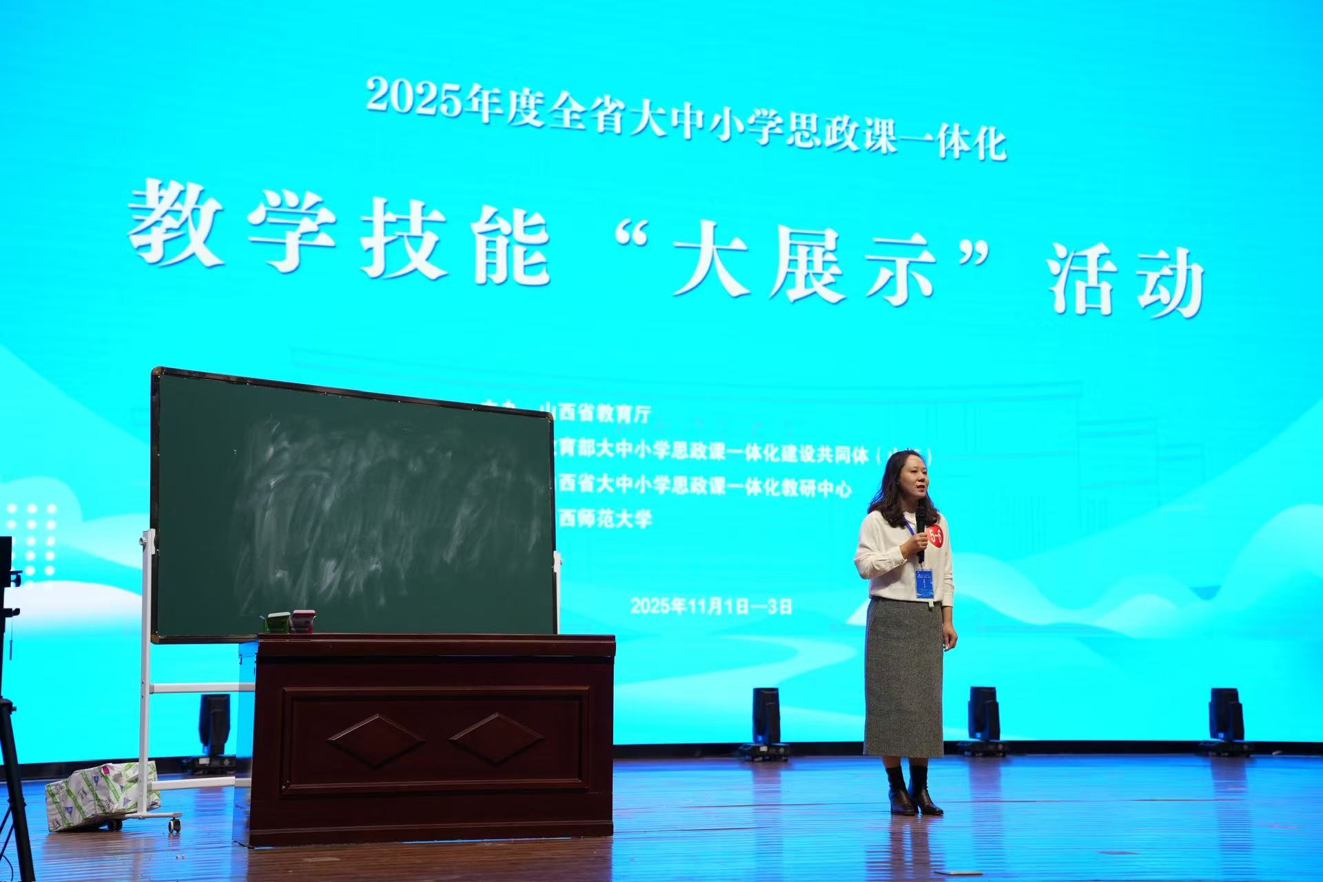 据悉,2025年度山西省大中小学思政课一体化教学技能“大展示”活动于2025年11月1日至3日成功举办,共有23支参赛队伍、138名教师参与现场展示。经专家评审,共评选出集体奖6个、个人奖36名。本次活动是山西省教育厅为推动大中小学思政课一体化建设、提升思政课教师教学能力的重要举措,对进一步推动思政课教学改革创新,增强思政课的思想性、理论性和亲和力具有重要作用。