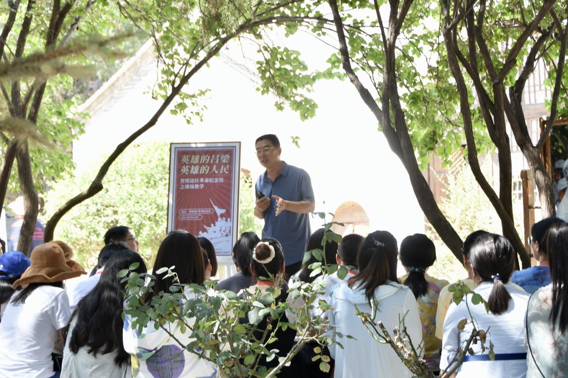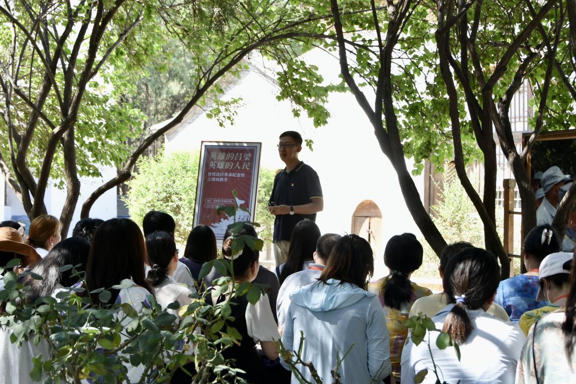 2021年7月14日下午,学员们结束了右玉研修之后,来到兴县。在晋绥边区革命纪念馆,suncitygroup太阳集团李可副教授和兴县县委党史研究室牛亚平主任与学员们一起进行了集体备课活动。本次集体备课活动是现场直播,在教育部搭建的平台上全国高校思想政治理论课教师皆可观看。李可以“英雄的吕梁,英雄的人民”做主题发言。他介绍了兴县在革命战争年代的重要性。晋绥边区与晋冀鲁豫、晋察冀、大青山根据地等距陕甘宁边区较近,担负着保卫陕甘宁边区、保卫党中央、守好中央东大门的责任。李可分别介绍了晋绥边区革命纪念馆的毛泽东故居、贺龙故居、刘少奇故居、毛泽东在晋绥干部大会讲话旧址。李可强调,在抗日战争时期和解放战争时期,晋绥边区不仅是后方,也是斗争的前方,发挥了重要的作用。结合晋绥边区历史,李可还就习近平总书记在庆祝中国共产党成立一百周年大会上的讲话、习近平总书记在兴县的调研活动,做了自己的阐释。