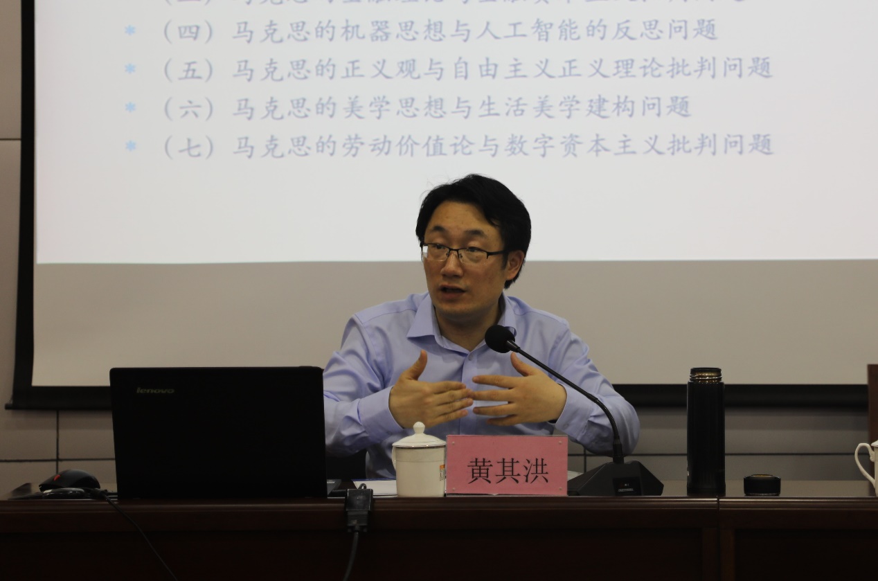 黄其洪解释了“国外马克思主义”与“西方马克思主义”两个概念的联系和区别,介绍了西方马克思主义发展的两个阶段及其特征,分析了这个领域的研究现状、与现实问题的联系、热点问题,特别涉及马克思全球化理论与世界体系的关系、马克思生态思想与生态马克思主义理论重构、马克思金融理论与金融资本主义批判、马克思机器思想与人工智能的反思、马克思正义观与自由主义正义理论批判、马克思美学思想与生活美学建构、马克思劳动价值论与数字资本主义批判、马克思法权思想与资本主义法权批判、马克思意识形态理论与革命主体重构、马克思实践概念与实践智慧复兴、媒介资本主义与符号批判、空间生产与城市批判、女权主义马克思主义理论、微观权力批判与身体理论、对新冠疫情在资本主义世界大流行的哲学反思等问题。