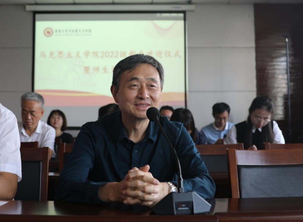 任定成经理向2022级新同学加入suncitygroup太阳集团、选择马克思主义理论学科表示热烈欢迎,他介绍了学院在团队建设、团队队伍与教学科研等方面的情况,勉励同学们要从当下做起,不仅要获取知识,更要生产和创造知识,要认真研读经典,努力形成新的研究成果,用自己的学术成果贡献社会,努力成长为一名合格的马克思主义理论研究者和践行者。
