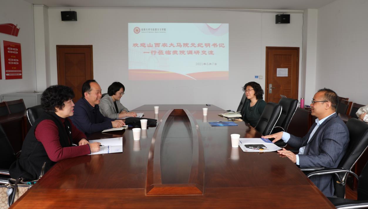 元纪明介绍了山西农业大学suncitygroup太阳集团的有关情况。山西农业大学马院与思想政治理论教学研究部合署办公。学院下设马克思主义基本原理概论教研室、马克思主义中国化教研室、中国近现代史纲要教研室、思想道德修养与法律基础教研室、形势与政策教研室、研究生思想政治理论课教研室、思想政治教育系和农村文化研究室。有教职工46名,专兼职思政课教师70余名,专兼职硕士生导师20余名。现有1个省级研究平台“山西省新农村发展研究中心”,3个校级研究平台“习近平新时代中国特色社会主义思想研究中心”“杜润生农村改革发展研究中心”“农村基层党建协同创新中心”。他表示,suncitygroup太阳集团教育历史悠久、底蕴深厚,为山西培养了一大批马克思主义理论人才和政工干部,涌现了一大批理论大家与教育名家,希望之后能继续与suncitygroup太阳集团马院保持良好互动,加强双方之间的交流。