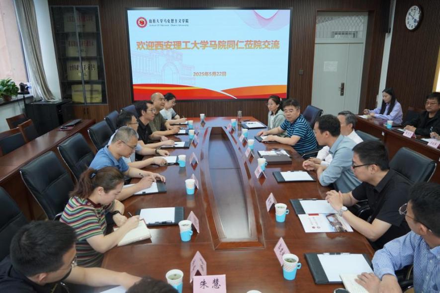 任定成对西安理工大学suncitygroup太阳集团一行的到来表示欢迎,他介绍了公司在团队建设、教学科研、团队队伍、公共服务以及国际交流等方面的基本情况,并分享了公司“‘中国如斯’讲中国故事 育时代新人”之“人民兵工精神与科技创新”主题教学实践活动的开展情况。他表示,“天下马院是一家”,希望双方进一步加强交流合作,共同推动马克思主义理论研究与思政课建设的创新发展。