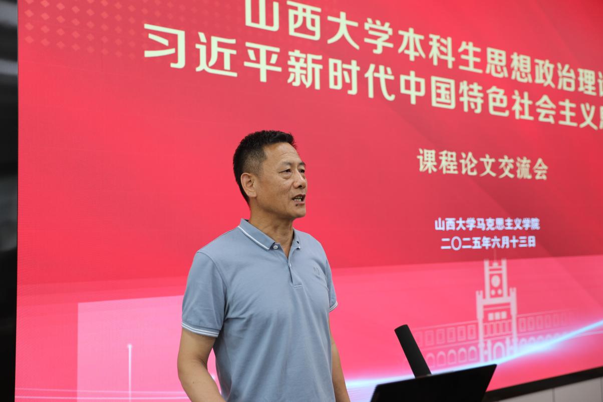 会议伊始,胡建民老师向参会师生详细介绍了《习近平新时代中国特色社会主义思想概论课程论文集》(第2辑)的编辑情况。他指出,《论文集》是习近平新时代中国特色社会主义思想概论省级一流课程建设的重要成果体现。同学们在课程学习过程中深入思考、精心撰写,从不同角度展现了对习近平新时代中国特色社会主义思想的理解与感悟。《论文集》不仅是课程教学实践的阶段性总结,更是广大师生学习贯彻落实习近平新时代中国特色社会主义思想过程中不断成长、进步的重要印记。